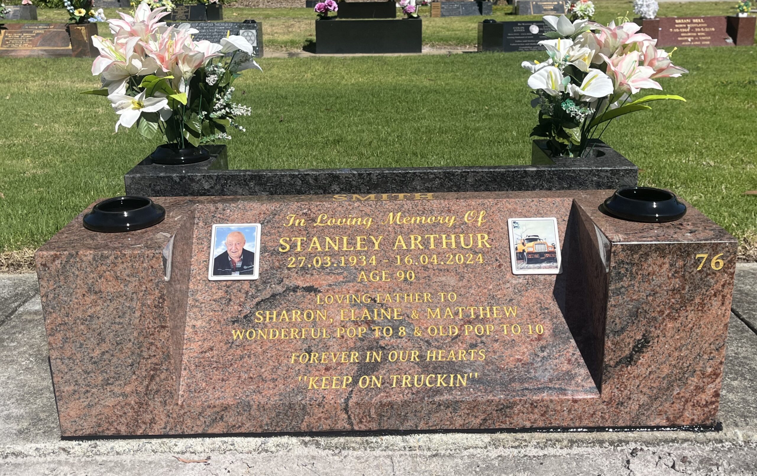 View below for our headstone samples below. There are a variety of finishes and colours available across our granite, sandstone and marble headstone offerings, as well as endless design possibilities. G.C.Smith & Co also offers a range of accessories, including floral clusters, vases, statues and other ornaments.