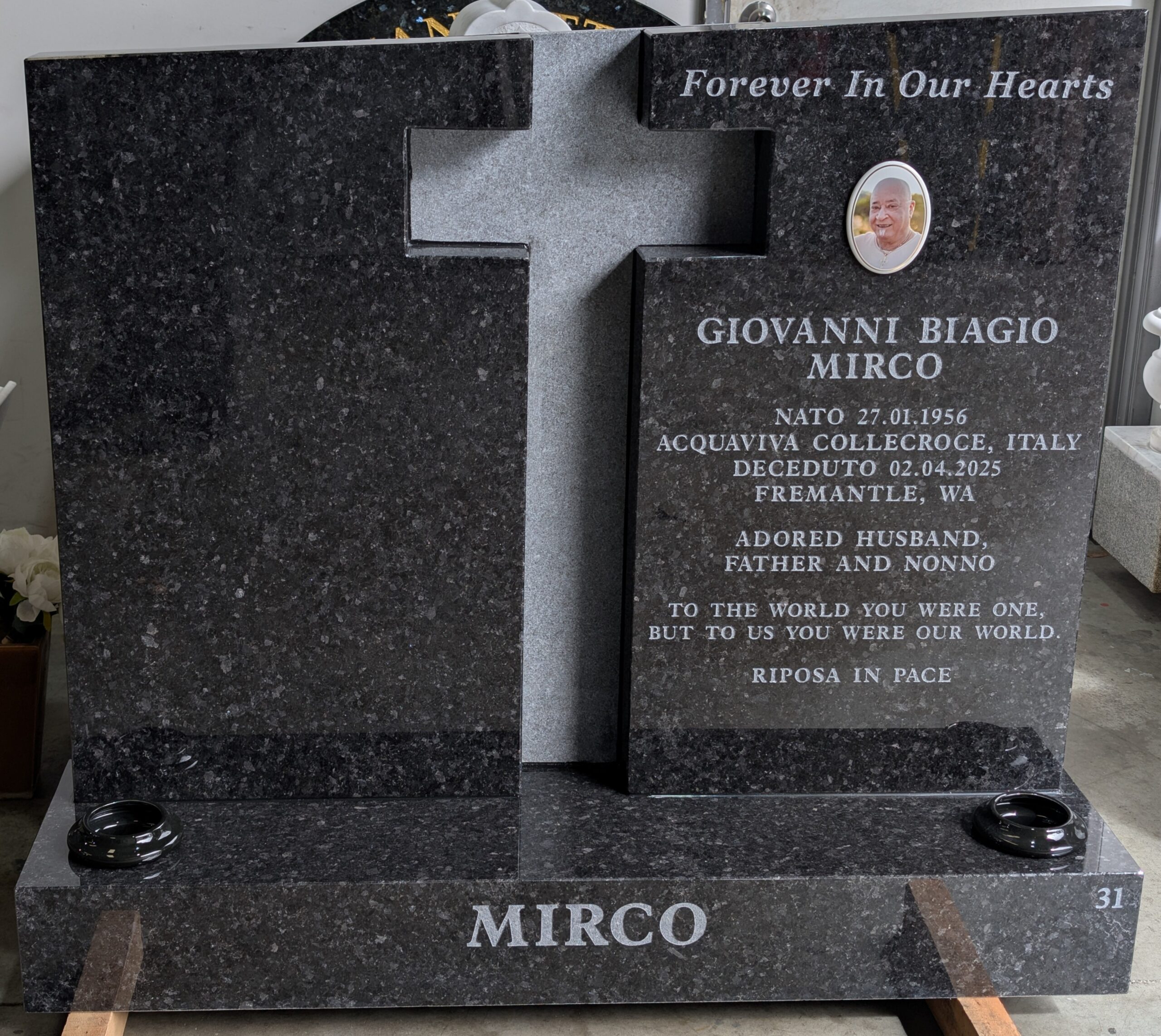 Because stone is a natural product, colours will vary from the images displayed online. To view our range of Perth headstones, visit our O’Connor showroom and talk to our friendly staff about the headstone you wish to create for your loved one.